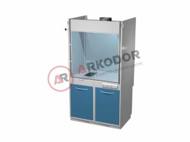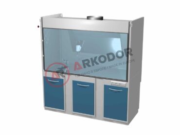 Шкаф оборудуется прозрачной передней стенкой и подводкой воды и электричества. Столешница из нержавеющей стали, сам шкаф изготовлен из химически стойкой окрашенной полимером стали.