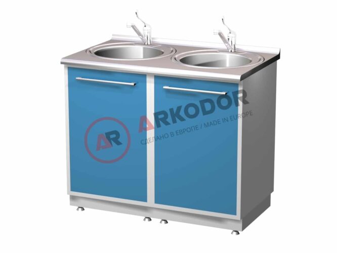 Металлическая тумба лабораторная с двумя мойками и смесителями, столешница нержавейка, в880 х ш1000 х г580мм